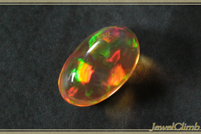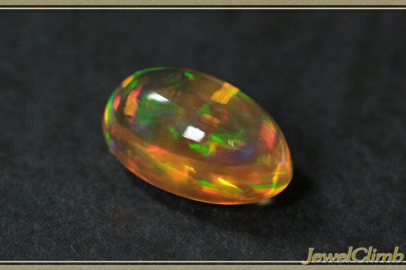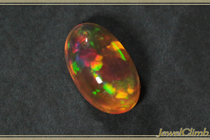 This Mexican opal has beautiful, fantastical play of colors that spread throughout the entire crystal. The plump oval crystals have few inclusions and produce impressive play of orange-red and green colors. The play of colors that emerge from the soft orange base color has a beauty that is difficult to describe in words. In addition, beautiful Mexican opals have become much less common in the Japanese market in recent years. Enjoy the fantastic play of colors created by nature. |