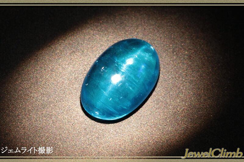 This is a stone colored in neon blue, which is the most popular among the apatite cat's eyes.