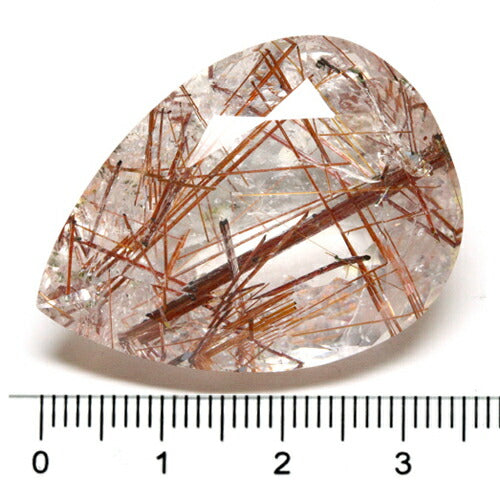 ◇Gemstone: Red rutilated quartz ◇Weight 82.92CT ◇Shape: Pear shape ◇Dimensions: 26.08 x 35.45 x 17.07 mm ◇Origin: Brazil ◇Hardness 7 ◇Quality -- ◇Hue -- ◇Notes: Loose identification certificate included