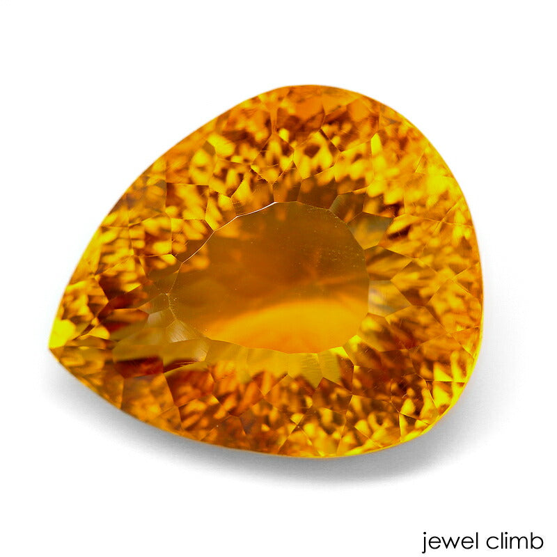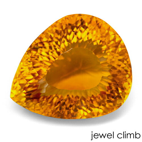 Golden citrine gives an outstanding impact. This is a beautiful stone with a deeper, more vibrant color than typical citrine. Custom cutting by skilled craftsmen has made these beautiful colors even more appealing. The artisan's original cut, which involves making the table surface of the plump pear-shaped cut as narrow as possible and finely dividing the number of cut surfaces, is truly magnificent. A beautiful citrine that shines powerfully and has a different sparkling shine than usual. It is 45 carat in size, so it is very impressive. This large, custom-cut citrine boasts excellent transparency and a special brilliance that makes its vivid color seem even more impressive. This is a highly recommended stone. |