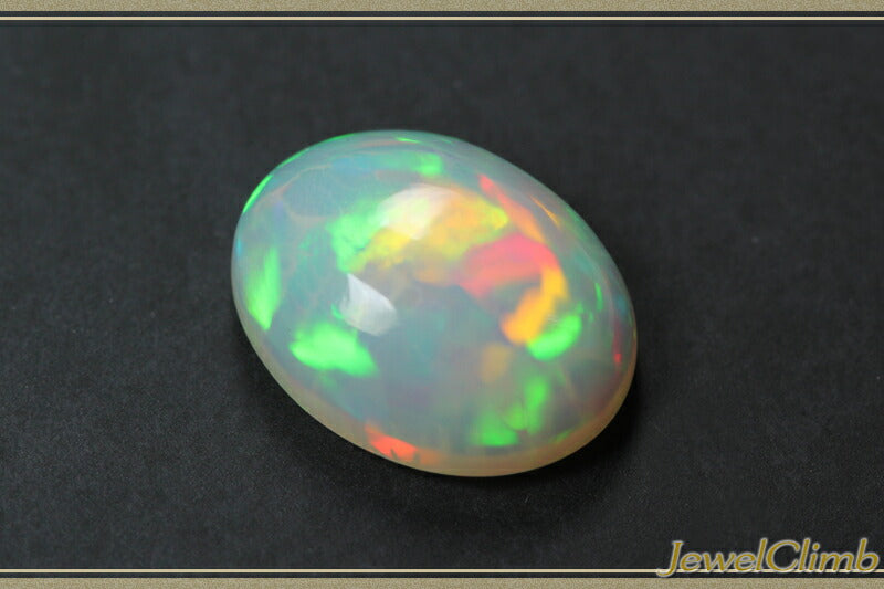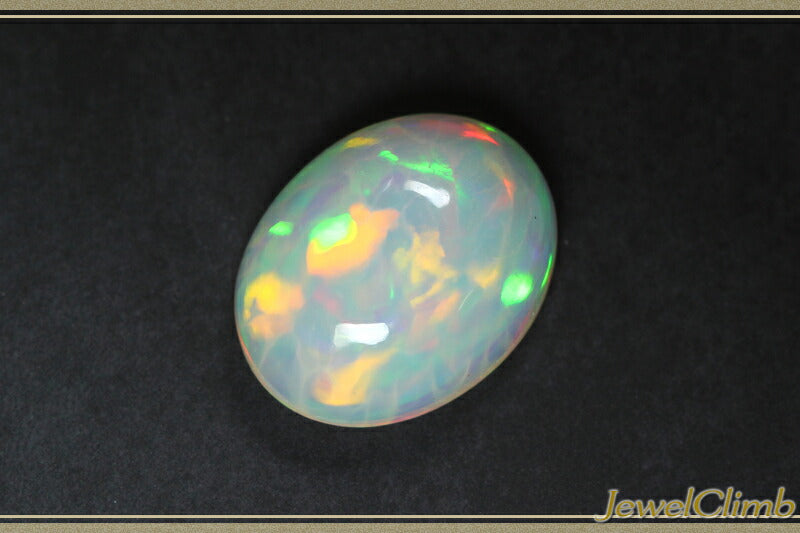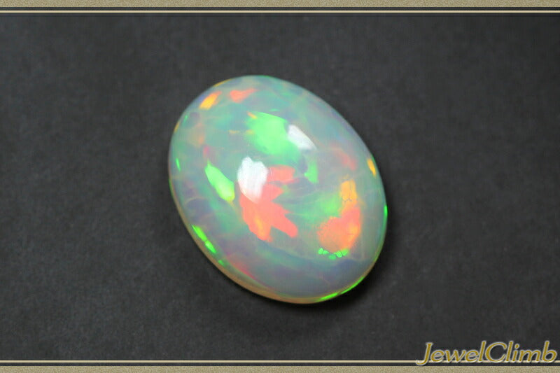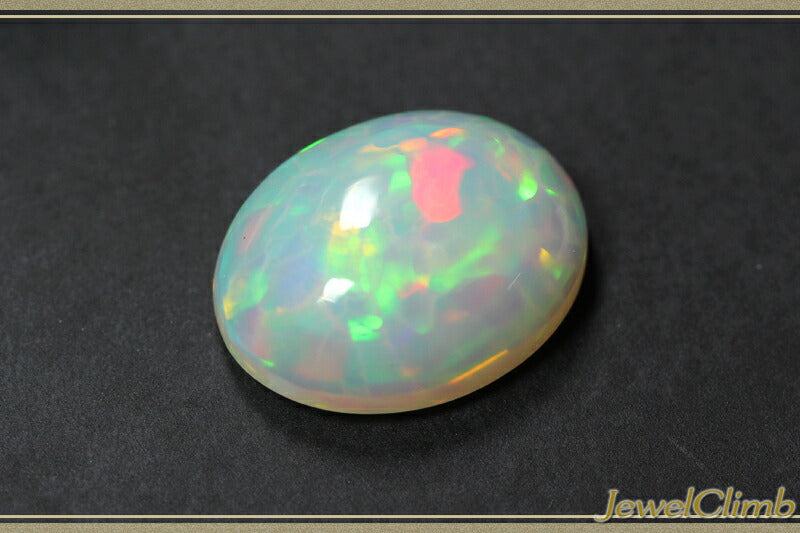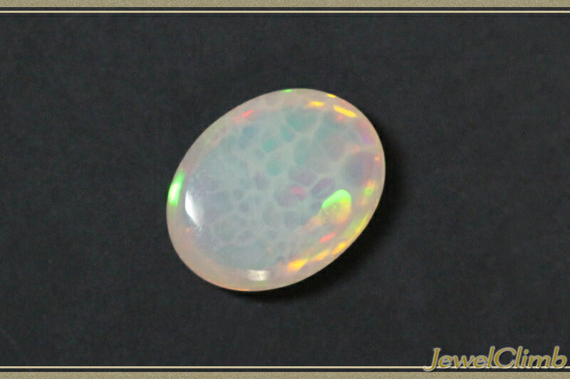 It has a glossy appearance and a fresh, moist feel. This is a crystal opal from Sudan that offers beautiful play of color. While many crystal opals have a pronounced neon green color, this crystal displays a rich expanse of vivid iridescence, including neon orange and yellow, a highly rated orange-red, which dances lightly within the crystal. The quality of this polishing is particularly evident, with the colors appearing three-dimensionally on the plump oval body. It is also transparent, and even if you turn the crystal upside down, its beauty remains the same, so you can enjoy its beauty from any angle. If you look closely, you can see a honeycomb-like pattern called "Harney Combo" or "honeycomb structure." Crystals with this pattern are very rare and highly valued. Please add this to your collection. |