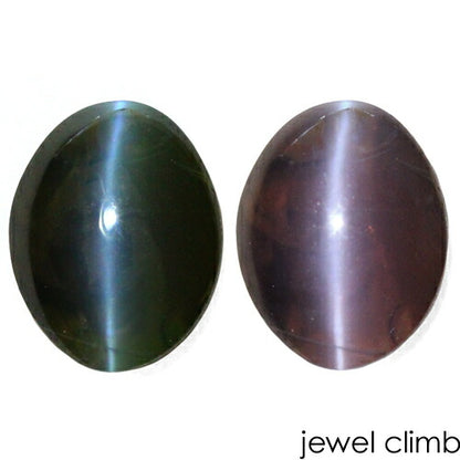 貴重な1.1CTサイズを持つブラジル産・アレキサンドライトキャッツアイ。 艶々したカボション結晶は地色は穏やかな地色を魅せ眺めてると癒されるような一石です。 ペンライトを当てれば、隠していたかのようにびしっと走る見事なまでの神秘のキャッツアイ。 綺麗に変るカラーチェンジと透明感が際立ち結晶の新たな魅力を実感出来ます。 また、キャッツアイ石ですので、側面裏面は研磨が施されませんので、窪みはございますが評価対象となる結晶表面は目立つくぼみなども無く美観を損ねるような内包物も無いハイクオリティ。 程よいカボションの高さに磨き上げられジュエリーとしても映える一石です。 鉱山で得られた200ピースの結晶の中に一つあるか無いかというほど産出量はアレキサンドライト以上に希産な一石。 滅多に出会うことのない美しさをペンライトを当ててじっくり眺めていただきたい希少なアレキサンドライトキャッツアイです。 |