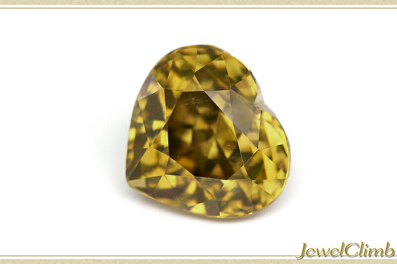 印象的なイエロー。 遠目に見ても存在感あるハートジルコンです。 屈折率と複屈折が大きい為に他の宝石にはない独特の瞬きが感じられ鋭くも感じられる光彩が特徴的です。 ジルコンは低温加熱をしたブルーが大変有名ですがイエローやオレンジなどは処理をせずそのまままカットされます。 自然に近い色となりますので上品さが際立ちます。 クラシカルな雰囲気がしっくりくるかと思います。 また、大きいサイズのハートはあまり存在致しませんのでこちらのジルコンの魅力の一つです。 重厚感さえ漂わせるカラーを持つこちらの非加熱ジジルコン。 ジュエリーやコレクションに大変お勧めです。 |