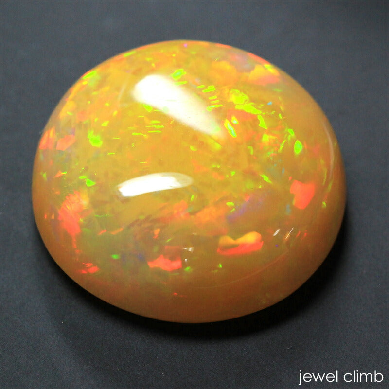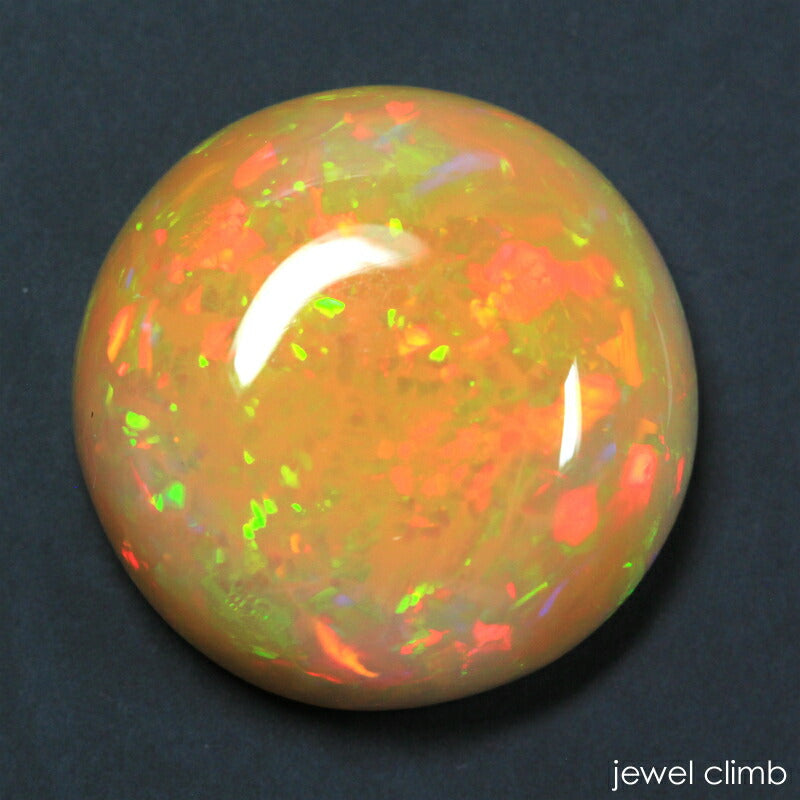 おちついたオレンジカラーを地色としネオンオレンジ、オレンジレッド、グリーン、イエローの遊色が美しく放たれるクリスタルオパール。 その大きさ、なんと32CTサイズ。 素晴らしい存在感に魅了されます。 主にネオンオレンジ、グリーンの2色の遊色が個々に美しさを競い合うような一石。 綺麗なラウンドカボション結晶に磨き上げられ見応えある光彩は必見です。 遊色のアピールが素晴らしい特大サイズのクリスタルオパール。 相当大きいので裏面に少し窪みがあったり致しますが全体を通してとても綺麗に感じられます。 まさにネオンカラーを感じさせる大粒オパールは自然が生んだ神秘の一石と言えます。 個性豊かクリスタルオパールの特大サイズを是非この機会にお楽しみください。 |