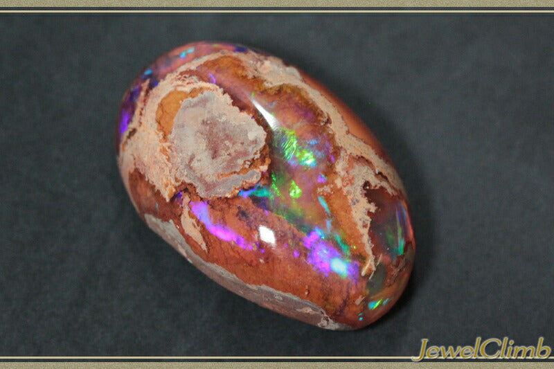 自然の神秘を味わえるカンテラオパーる。 カンテラオパールとはメキシコオパールの母岩である流紋岩質を、メキシコ名で「カンテラ」と呼ぶことから、メキシコ産の母岩付きオパールを一般的に 「カンテラオパール」と呼んでいます。 自然を感じさせてくれる独特のスタイル。 18CTの存在感があり、オパール層がとても多いのがこのカンテラの特徴です。 遊色も幻想的で透明度が高い為、内部を確認することができ、普通のカボションとはまた違った立体感が感じられます。 様々な遊色が浮かびあがりますので蛍光灯、ペンライト等、様々な光源の下でお楽しみ下さい。 |