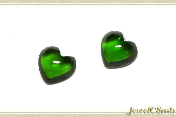 発色豊かなクロムグリーンが魅力的なクロムダイオプサイドのペアです。◇宝石 クロムダイオプサイト ◇重量 1.05CT(2石の合計) ◇形状 ハートカボション ◇寸法 4.8x5.1mm前後 ◇産地 ロシア 硬度 5.5~6.5 ◇品質 VS ◇色相 A
