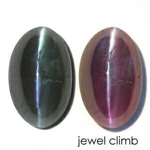 艶やかなオーバルカボションの結晶にシャトヤンシーの出現するアレキサンドライトキャッツアイ! 丁寧に磨かれ艶やかな結晶に光が当たるとすっと伸びるキャッツアイ。 蛍光灯やLEDの白い光ではブルーグリーンにペンライトや白熱球のオレンジの光ではレディッシュパープルに地色がカラーチェンジをすると同時にシャトヤンシーも出現する二種類の特殊効果を持ち合わせた当店で人気の高い宝石です。 流通量の少ないアレキサンドライトよりも稀少で1CTUPの高品質アレキサンドライトキャッツアイとなると入手が非常に困難な宝石となります。 透明感のある結晶で光を受けハッキリ・クッキリとシャトヤンシーの現れるルースでカラーチェンジもブルーグリーンからレディッシュパープルへガラリと変わる魅力的な一石です。 この機会にコレクションに加えてみてはいかがでしょうか。 |