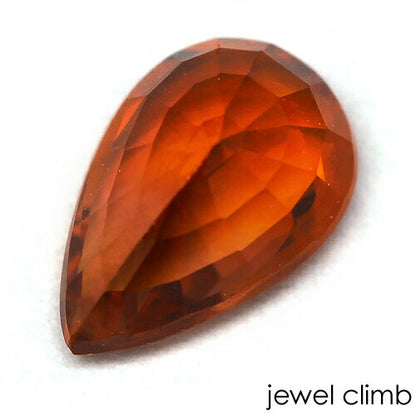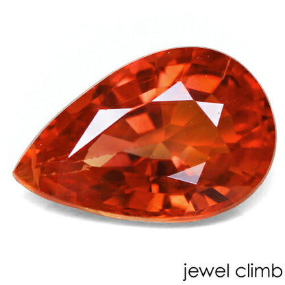 ふっくらとしたペアシェイプの結晶に彩る鮮やかで鋭いレディッシュオレンジが美しいオレンジサファイア。